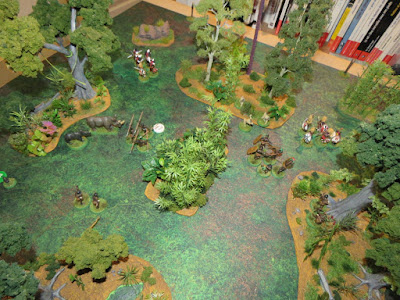 Once the deployment is complete and the entry point chosen, we discover the numbers of the fetishes.To score points of victories I must have a group in contact with the fetish having the same number as that of the round in court, in this case the fetish is destroyed and I take as many points as the number of the fetish.The villagers must stop me and win the maximum of melee to score points.In addition, there are magical effects linked to fetishes, plus some spells.A complicated scenario, but it's always like this in Congo.However, luckily, fetishes 2, 3 and 4 are the closest to my point of arrival.